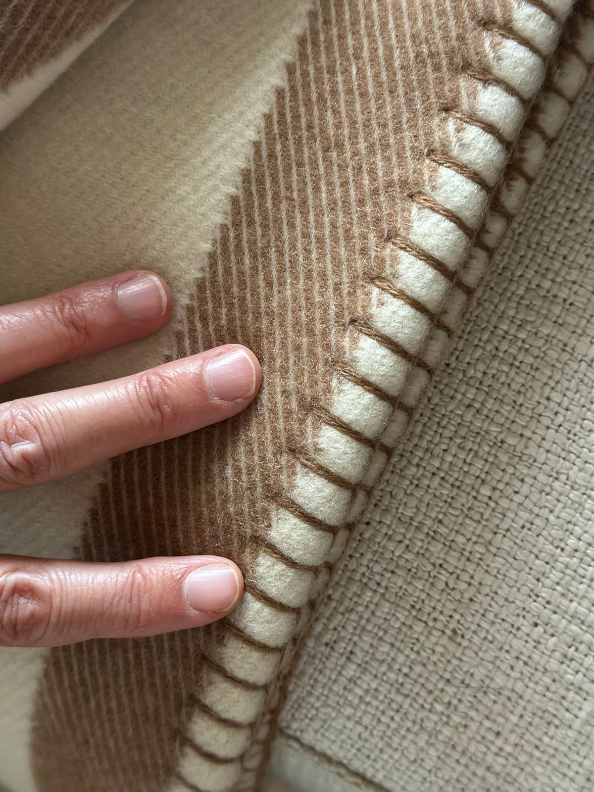 Les Amandiers Home ont créé le plaid Bambou, fabriqué en Italie en tissé Jacquard.