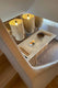 Cette suspension est structurée en cône puis prend une forme droite. Elle est tricotée en fil de lin par une jeune artisan.